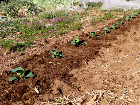 ★R7年10月23日、春先収穫用にブロッコリー苗を移植しました。(写真⇒左) ⇒今年の冬は降雨が無く乾燥のため枯れてしまいました。