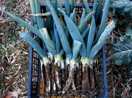 ★R7年12月15日、12月も中旬になりましたので下仁田ネギ(もどき)の収穫をしました。(写真⇒左) 下仁田ネギから比べれば太さが大きく異なりますが、下仁田ネギに近い食感です。(なので、下仁田ネギもどきです)