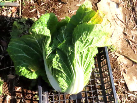 ★R7年12月3日、白菜の葉が大夫巻いてきています。。(写真⇒左) ★R7年12月23日、白菜を収穫して見ました。(写真⇒右)何時もの年よりは出来が良いです。