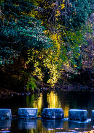 題 名:飛び石橋に輝く木漏れ日 撮影地:埼玉県嵐山町